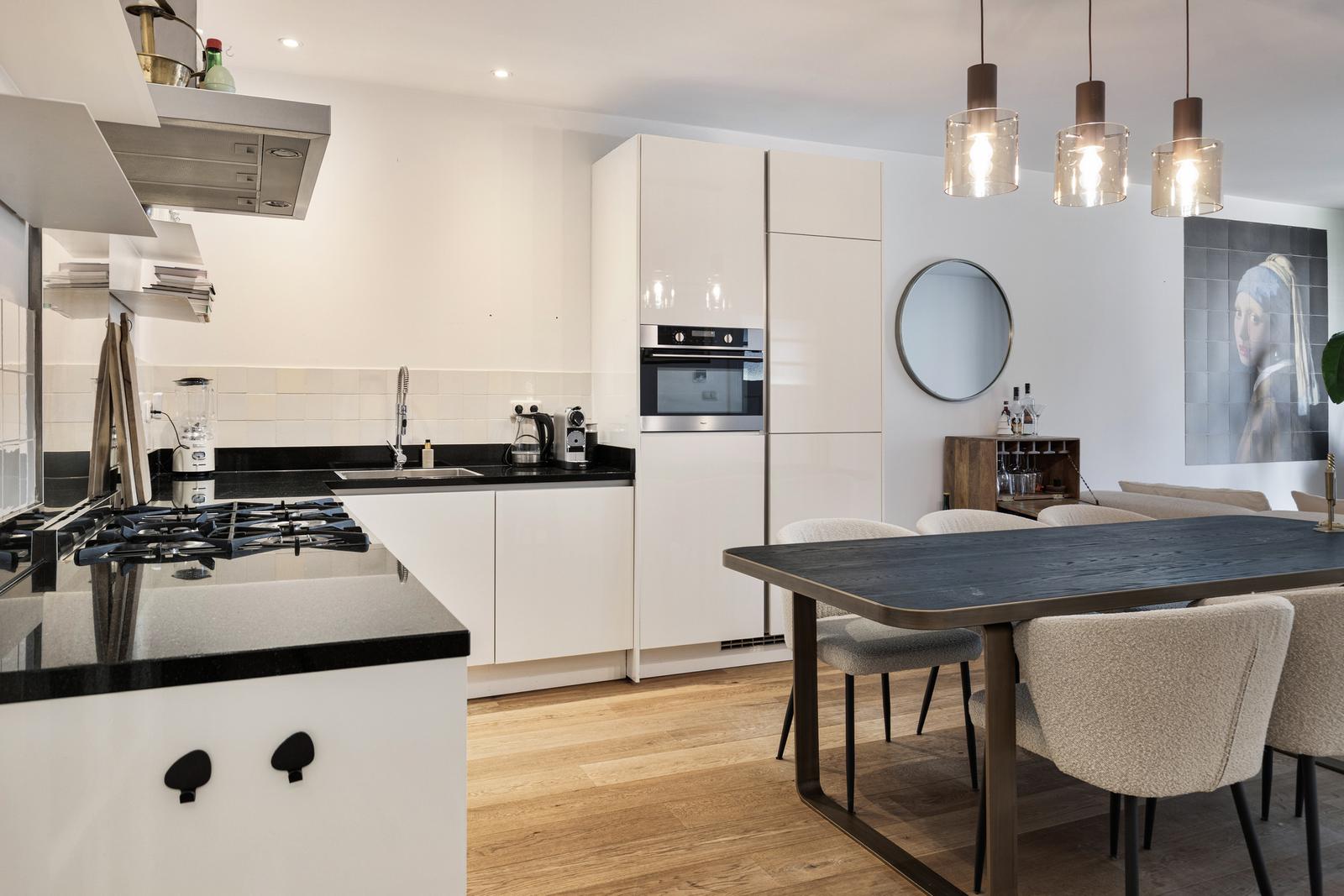Always wanted to live in the super nice Zeeheldenkwartier? This super modern ground floor apartment (approx. 74 m2) with on-site parking, completely renovated in 2015, at van de Spiegelstraat 10 can be yours. Our vlogging real estate agent takes you for a look! The apartment has a phenomenal living / dining room with an open modern kitchen equipped with various appliances (including refrigerator, freezer, (combi) microwave, dishwasher, 6-burner gas stove with oven and an extractor), spacious backyard facing southwest, two spacious bedrooms, a luxurious and modern bathroom with walk-in shower, washbasin cabinet, underfloor heating, toilet and technical room with space for central heating boiler and washing machine. The apartment is located on private land, has an active owners association (16/66th share) with a monthly contribution of € 109,14, is heated by central heating boiler (Remeha, built in 2014), insulated crawl space (Tonzon) and is fully equipped with wooden frames with double glazing. What a beauty!