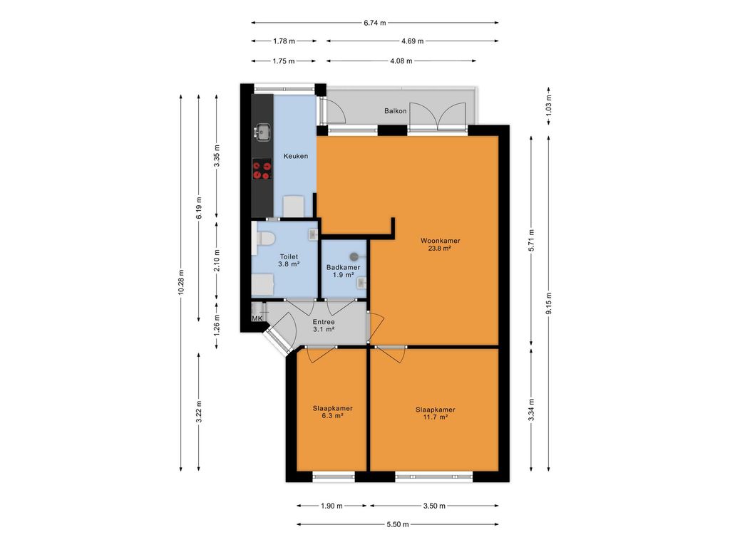 - Living area approx. 59 m2; measured in accordance with measurement instruction NEN2580;
